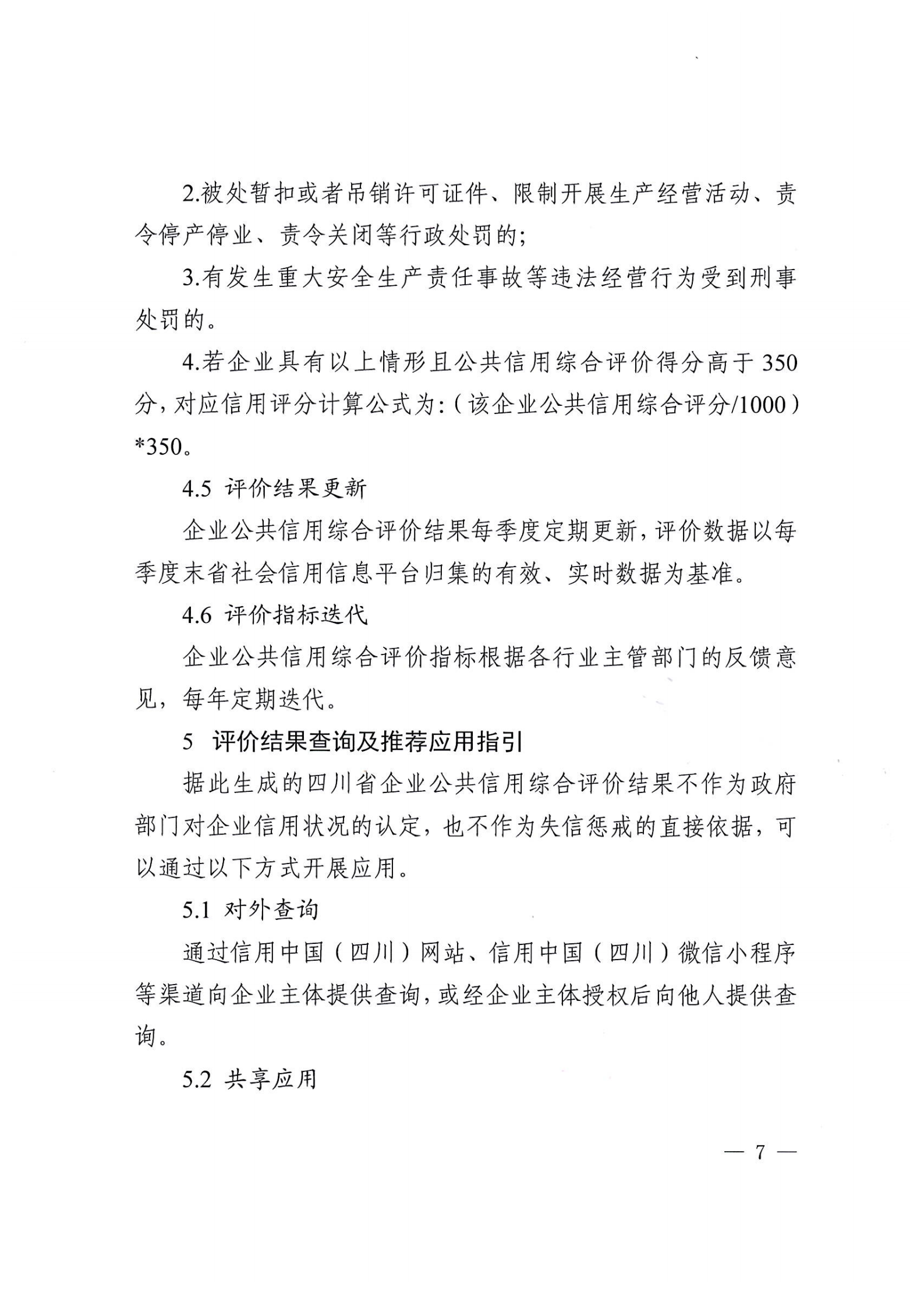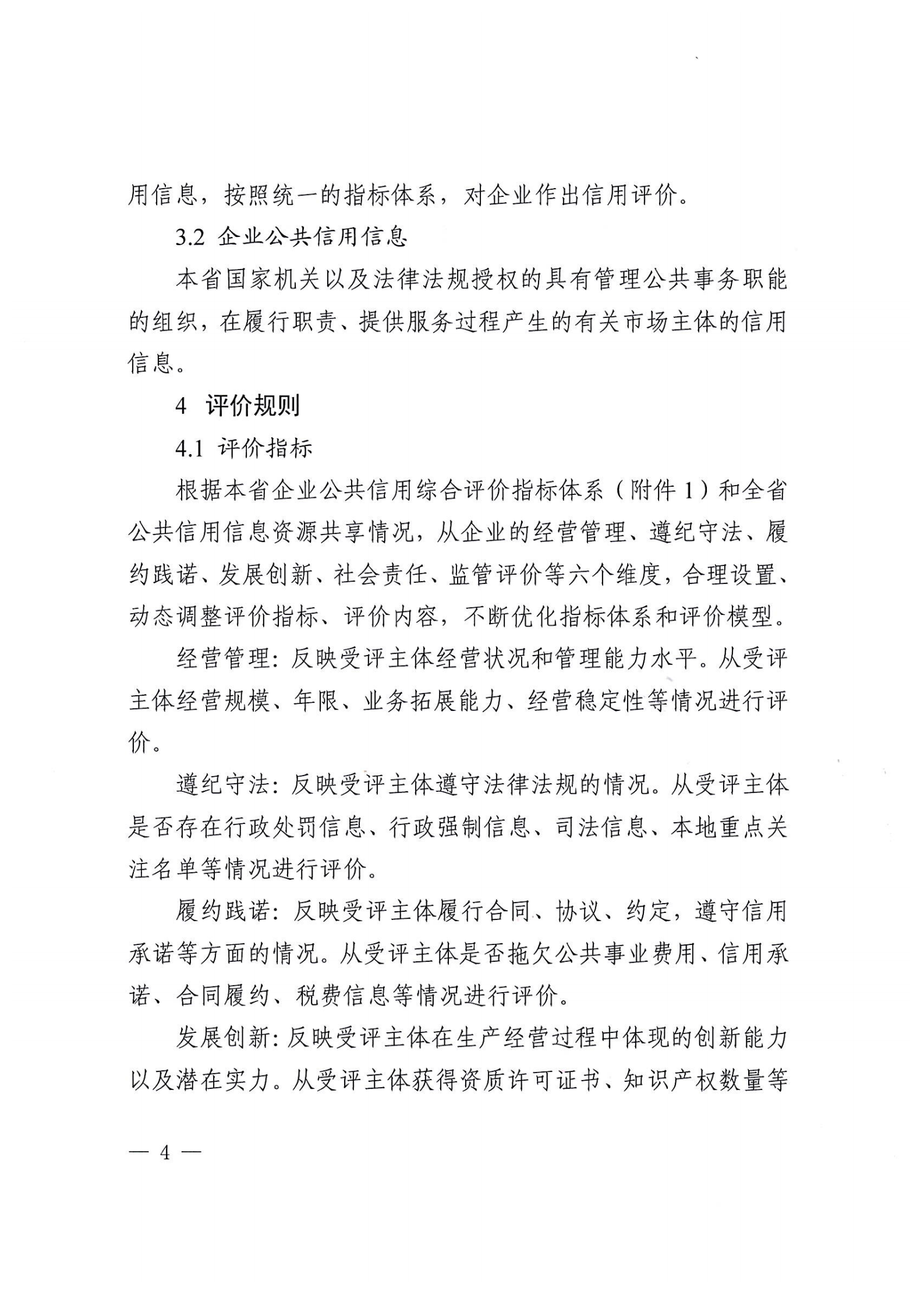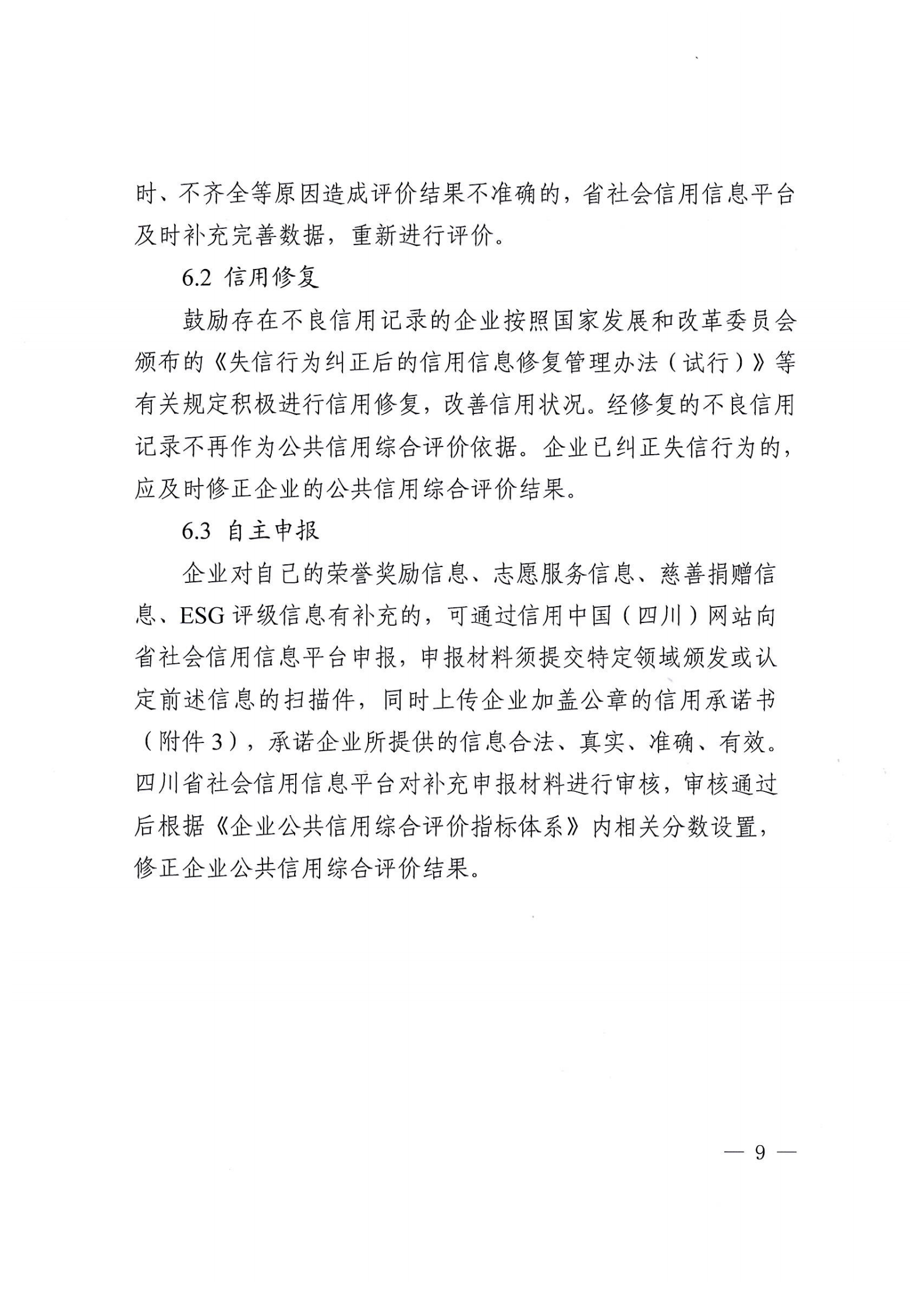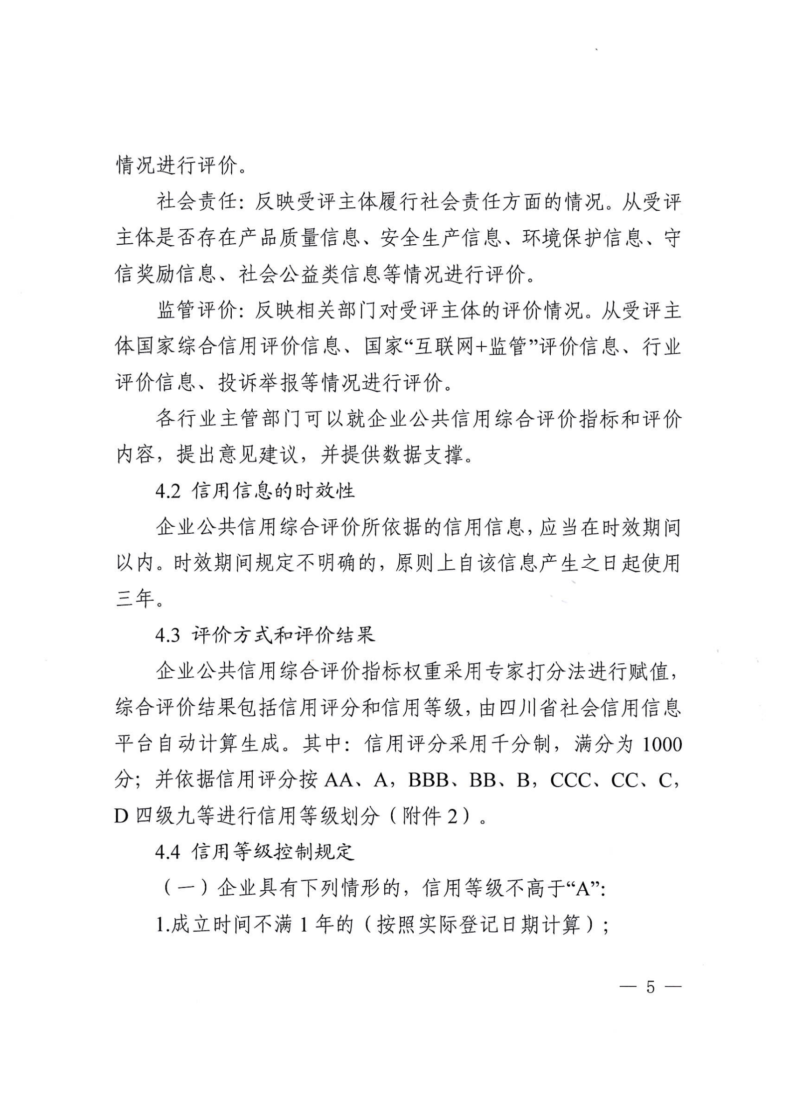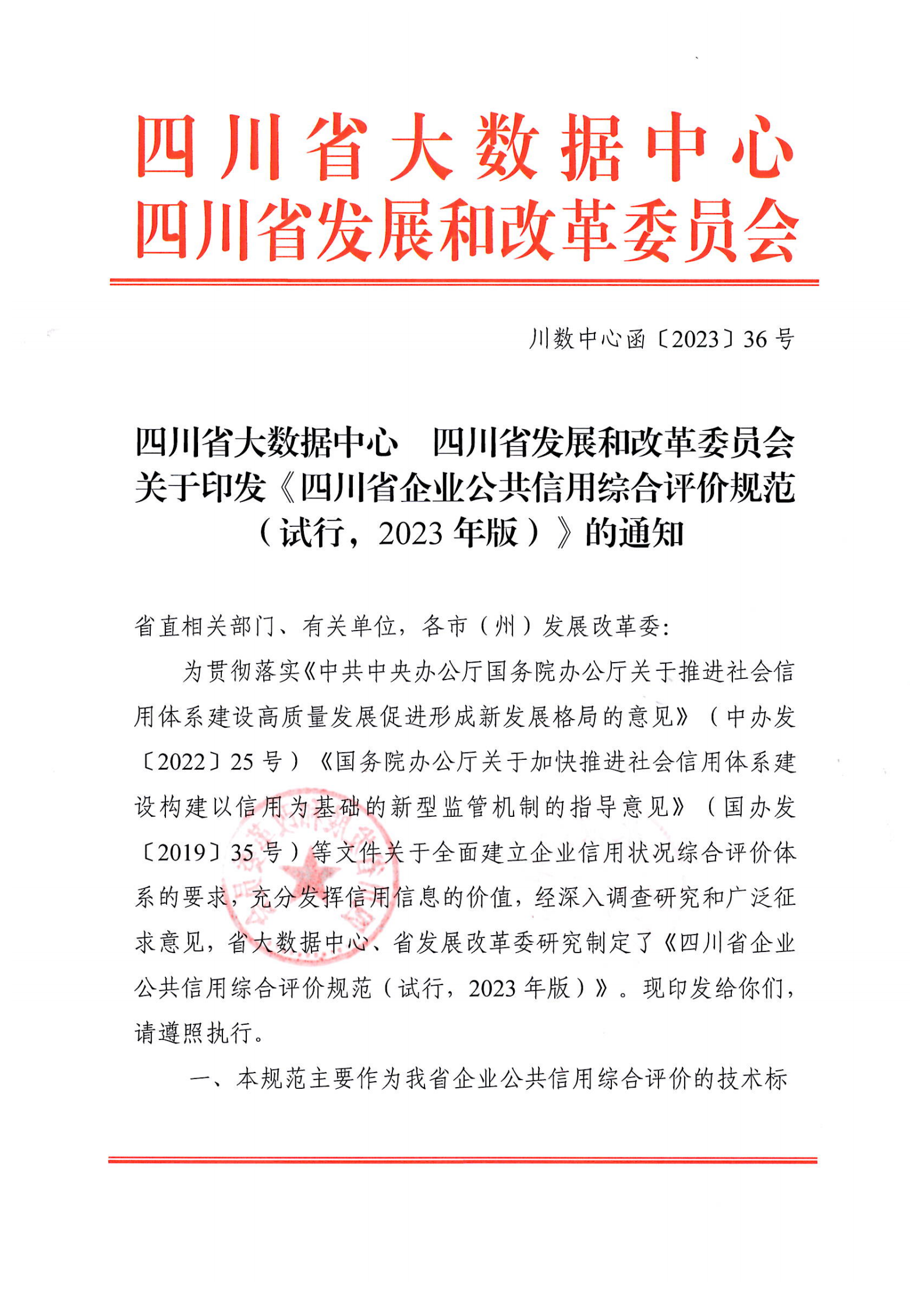 為貫徹落實《中共中央辦公廳國務(wù)院辦公廳關(guān)于推進社會信用體系建設(shè)高質(zhì)量發(fā)展促進形成新發(fā)展格局的意見》(中辦發(fā)〔2022〕25號)《國務(wù)院辦公廳關(guān)于加快推進社會信用體系建設(shè)構(gòu)建以信用為基礎(chǔ)的新型監(jiān)管機制的指導(dǎo)意見》(國辦發(fā)〔2019〕35號)等文件關(guān)于全面建立企業(yè)信用狀況綜合評價體系的要求,充分發(fā)揮信用信息的價值,經(jīng)深入調(diào)查研究和廣泛征求意見,省大數(shù)據(jù)中心、省發(fā)展改革委研究制定了《四川省企業(yè)公共信用綜合評價規(guī)范(試行,2023年版)》?,F(xiàn)印發(fā)給你們,請遵照執(zhí)行。